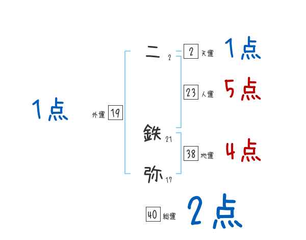 二鉄弥さんの画数の鑑定結果
