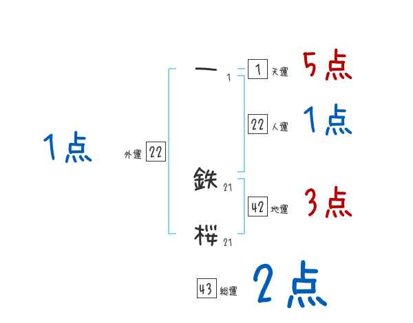 一鉄桜さんの画数の鑑定結果