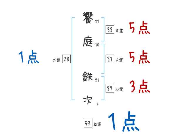 饗庭鉄次さんの画数の鑑定結果