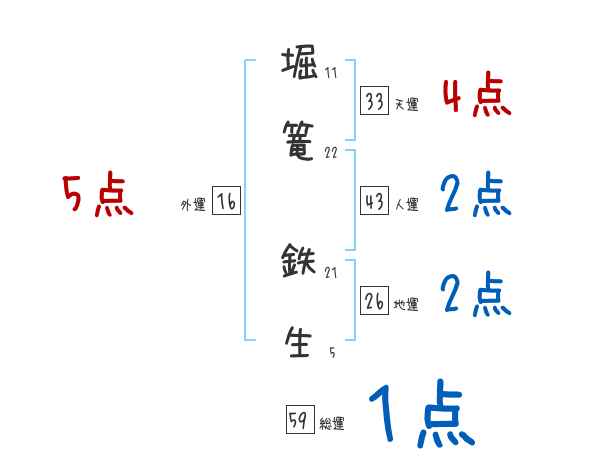 堀篭鉄生さんの画数の鑑定結果