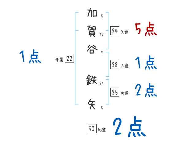 加賀谷鉄矢さんの画数の鑑定結果