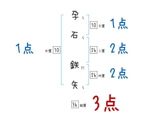 孕石鉄矢さんの画数の鑑定結果
