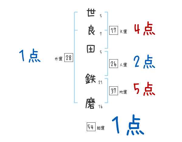 世良田鉄磨さんの画数の鑑定結果