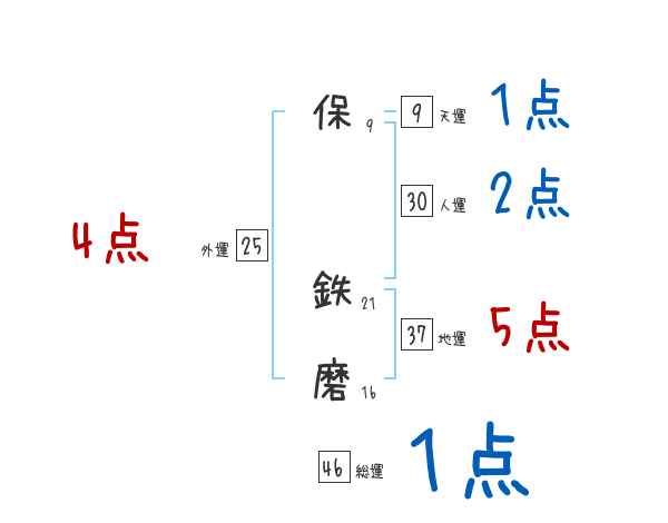 天運![]() | 保鉄磨さんの天運は9画の1つ星!消極的で才能を発揮することが苦手なことも。周りの意見に耳を傾けましょう。 家系が持つ宿命的な運勢を表します。祖先から受け継いだ苗字ですので自分の力が及びません。家柄を象徴します。 |