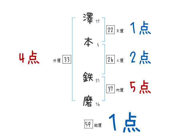 澤本鉄磨さんの画数の鑑定結果