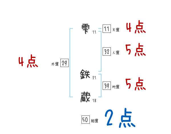 雫鉄蔵さんの画数の鑑定結果