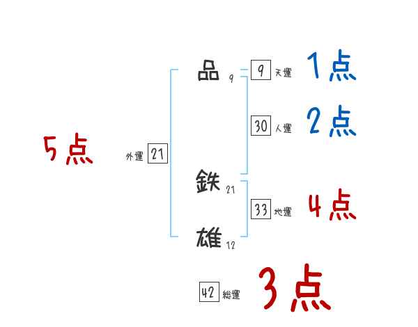品鉄雄さんの画数の鑑定結果