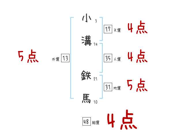 小溝鉄馬さんの画数の鑑定結果