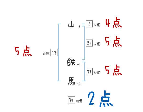 山鉄馬さんの画数の鑑定結果