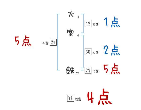 大室鉄さんの画数の鑑定結果