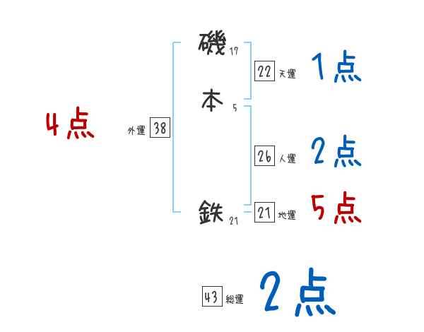 磯本鉄さんの画数の鑑定結果