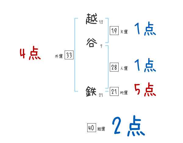 越谷鉄さんの画数の鑑定結果