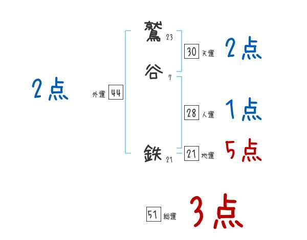 鷲谷鉄さんの画数の鑑定結果