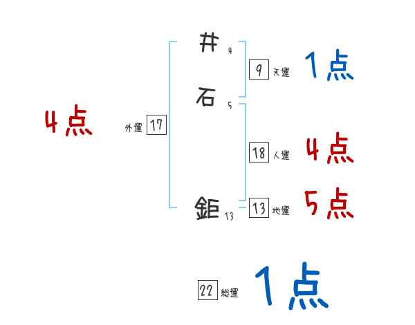 総運![]() | 井石鉅さんの総運は22画の1つ星!努力することが苦手ないっぽう手先が器用。芸術性にも優れる。 あなたの人生を表す1番重要な運勢です。生涯を通じて影響する総合運となり、主に50歳以降の晩年期に影響を及ぼします。 |