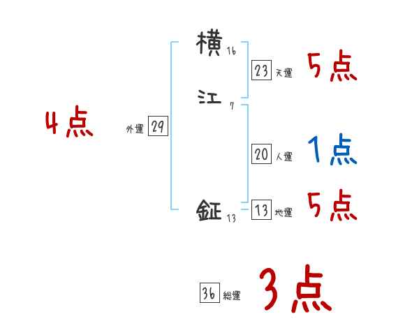 横江鉦さんの画数の鑑定結果