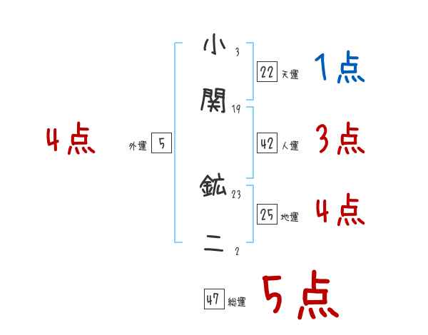 小関鉱二さんの画数の鑑定結果