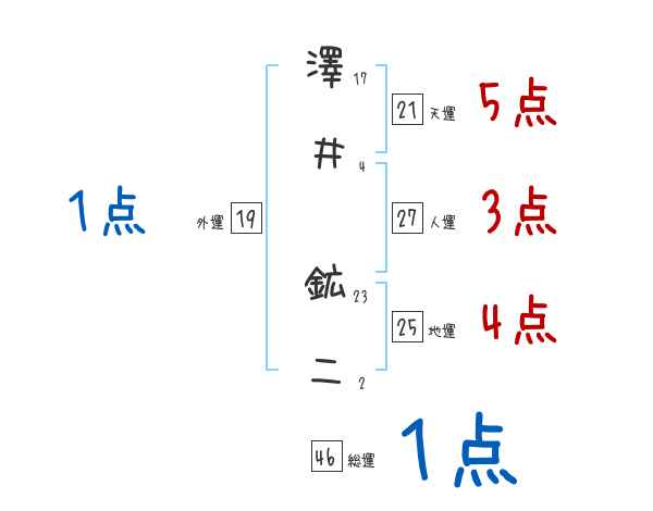 天運![]() | 澤井鉱二さんの天運は21画の5つ星!統率力がある。独立し成功する。名誉を手に入れる。 家系が持つ宿命的な運勢を表します。祖先から受け継いだ苗字ですので自分の力が及びません。家柄を象徴します。 |