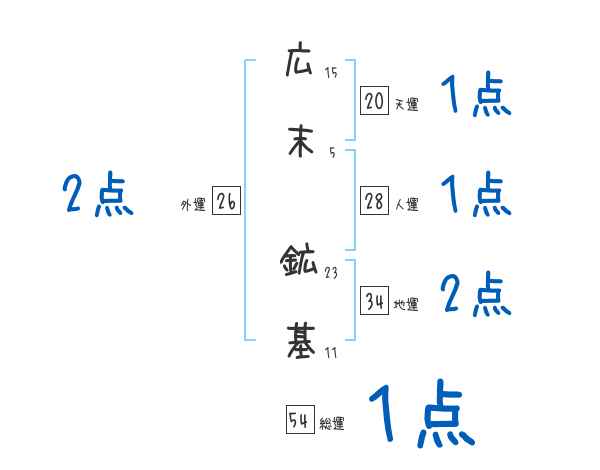広末鉱基さんの画数の鑑定結果