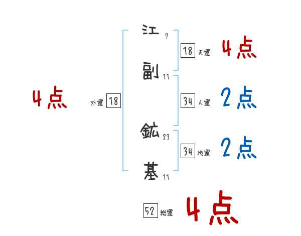 江副鉱基さんの画数の鑑定結果