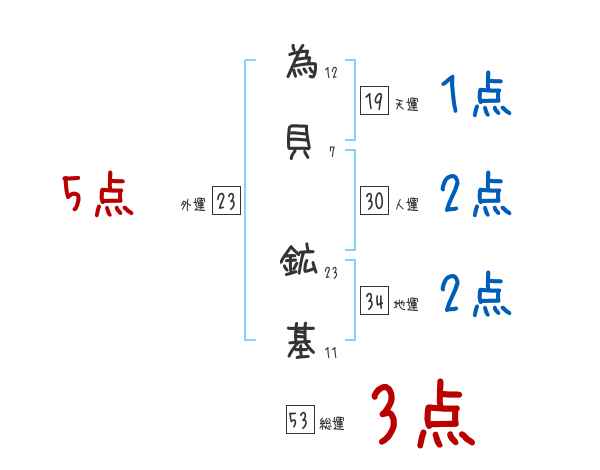 為貝鉱基さんの画数の鑑定結果