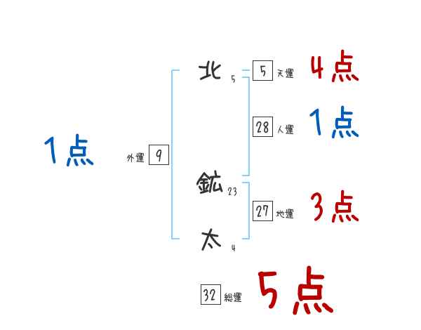 北鉱太さんの画数の鑑定結果