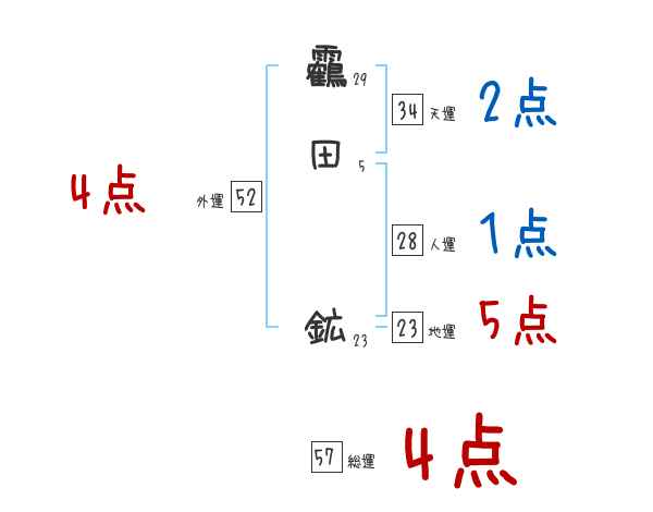 靏田鉱さんの画数の鑑定結果