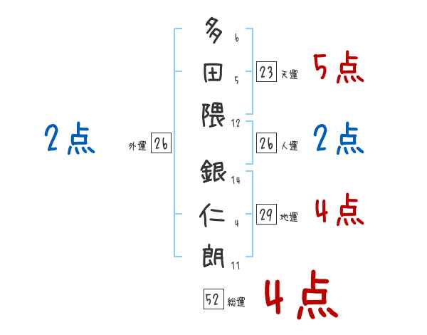 多田隈銀仁朗さんの画数の鑑定結果