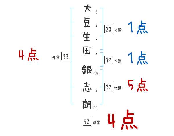 地運![]() | 大豆生田銀志朗さんの地運は32画の5つ星!柔軟性があり成功する。チャンスが多く金運が良い。 個性を表す基礎的な運勢です。性格形成や対人関係、行動力など家庭環境に影響されます。主に誕生してから20歳くらいまでの若年期の運勢を表します。 |