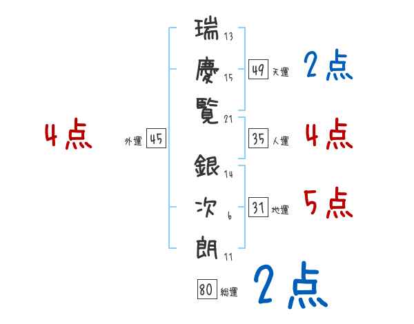 瑞慶覧銀次朗さんの画数の鑑定結果