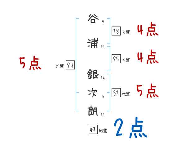 谷浦銀次朗さんの画数の鑑定結果