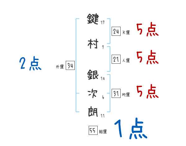 鍵村銀次朗さんの画数の鑑定結果