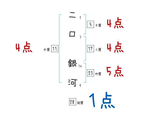二口銀河さんの画数の鑑定結果
