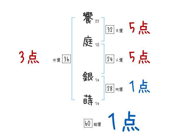 天運![]() | 饗庭銀蒔さんの天運は32画の5つ星!柔軟性があり成功する。チャンスが多く金運が良い。 家系が持つ宿命的な運勢を表します。祖先から受け継いだ苗字ですので自分の力が及びません。家柄を象徴します。 |