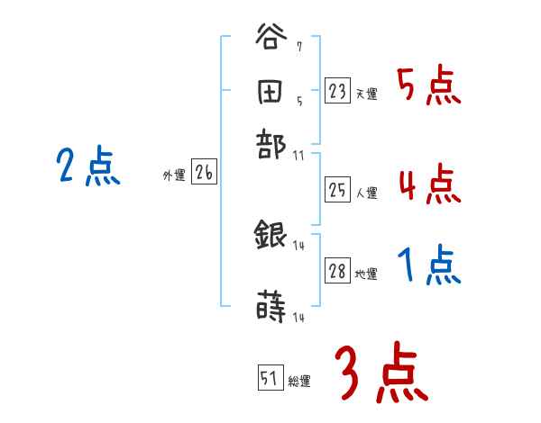 家系が持つ宿命的な運勢を表します。祖先から受け継いだ苗字ですので自分の力が及びません。家柄を象徴します。