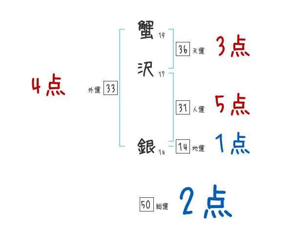 蟹沢銀さんの画数の鑑定結果