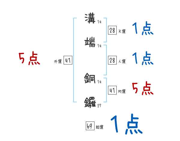 天運![]() | 溝端銅鑼さんの天運は28画の1つ星!家庭環境に注意。スポーツで活躍できる能力があるかも。 家系が持つ宿命的な運勢を表します。祖先から受け継いだ苗字ですので自分の力が及びません。家柄を象徴します。 |