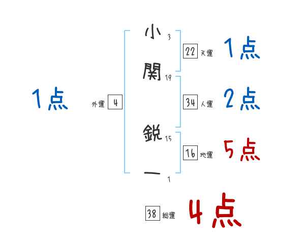 小関鋭一さんの画数の鑑定結果