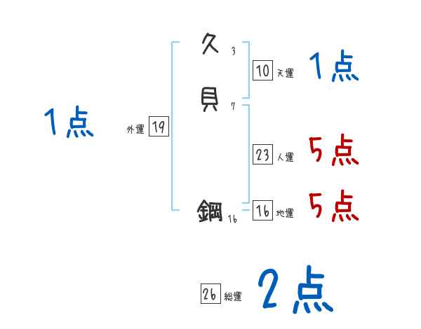 久貝鋼さんの画数の鑑定結果