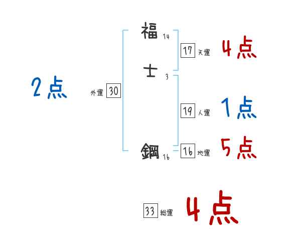総運![]() | 福士鋼さんの総運は33画の4つ星!権力志向でプライドが高い。勇気があり運を切り開き成功する。 あなたの人生を表す1番重要な運勢です。生涯を通じて影響する総合運となり、主に50歳以降の晩年期に影響を及ぼします。 |