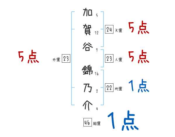 加賀谷錦乃介さんの画数の鑑定結果