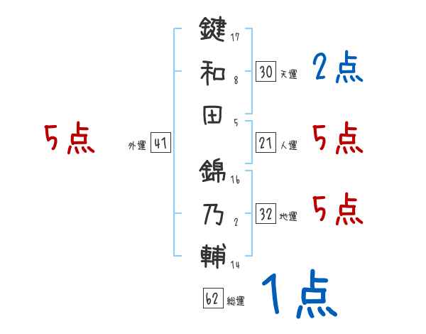 鍵和田錦乃輔さんの画数の鑑定結果