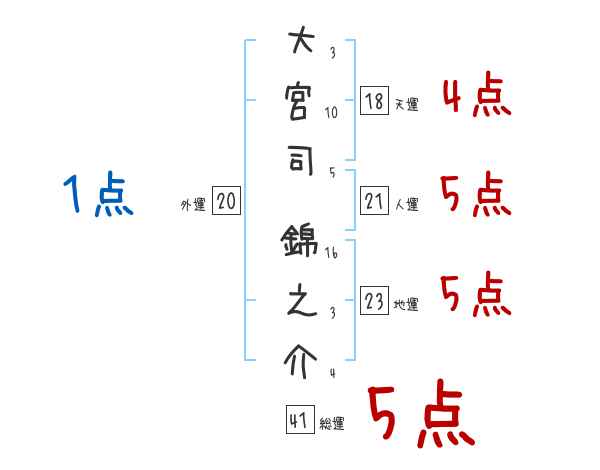 大宮司錦之介さんの画数の鑑定結果