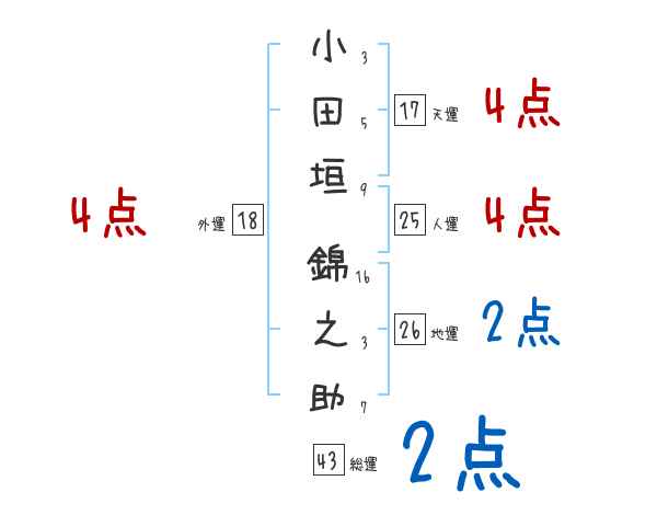小田垣錦之助さんの画数の鑑定結果