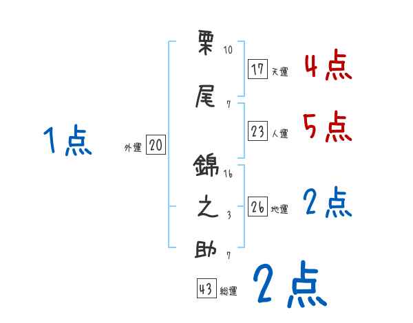 栗尾錦之助さんの画数の鑑定結果
