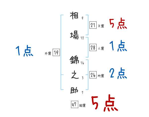 天運![]() | 相場錦之助さんの天運は21画の5つ星!統率力がある。独立し成功する。名誉を手に入れる。 家系が持つ宿命的な運勢を表します。祖先から受け継いだ苗字ですので自分の力が及びません。家柄を象徴します。 |