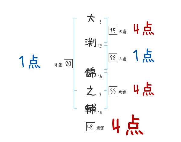 大渕錦之輔さんの画数の鑑定結果