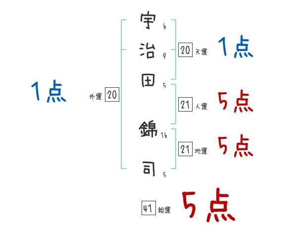宇治田錦司さんの画数の鑑定結果