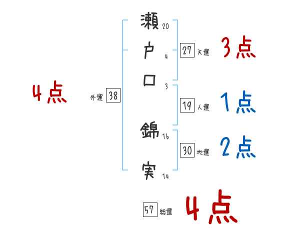 総運![]() | 瀬戸口錦実さんの総運は57画の4つ星!向上心があり人望がある。地位を得る。 あなたの人生を表す1番重要な運勢です。生涯を通じて影響する総合運となり、主に50歳以降の晩年期に影響を及ぼします。 |