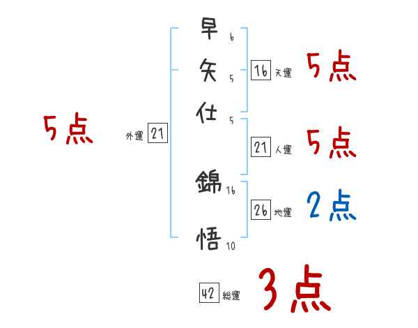 早矢仕錦悟さんの画数の鑑定結果