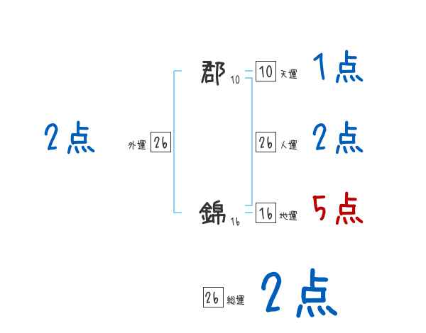 郡錦さんの画数の鑑定結果